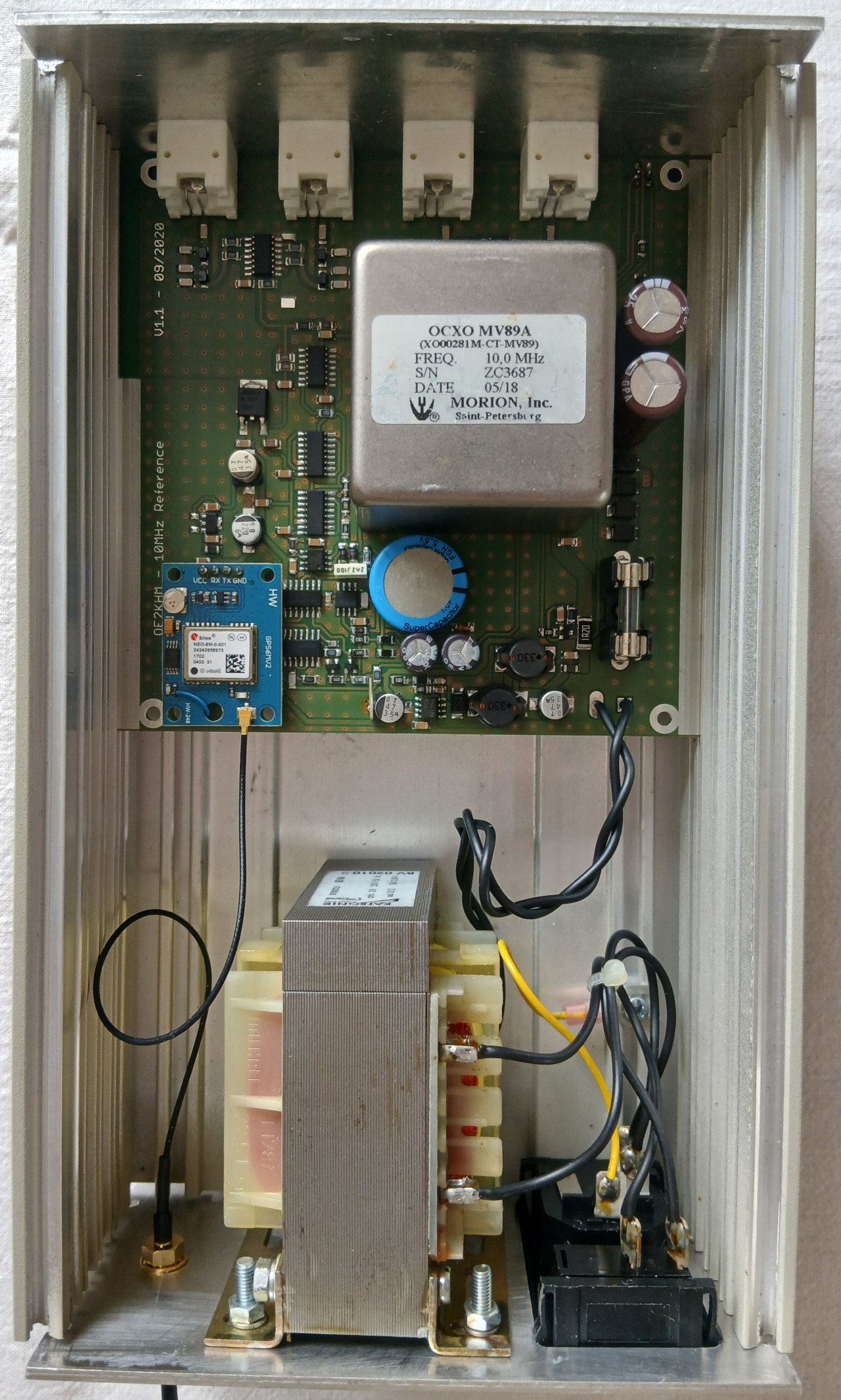 For applications requiring a very precise reference frequency, the use of an oven-controlled quartz oscillator (OCXO) is recommended, as it provides excellent frequency stability by maintaining the crystal at a constant temperature. The frequency stability of, for example, a 10 MHz OCXO (Oven-Controlled Crystal Oscillator) from Morion, Inc. (MV89-B01E-10.0 MHz) is already very good.